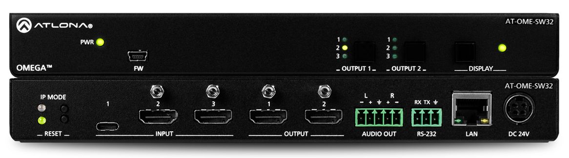 The Atlona AT-OME-SW32 is a uniquely compact, versatile 3×2 matrix switcher with HDMI and USB-C inputs, and HDMI outputs. The OME-SW32 is part of the Omega™ Series of integration products for modern AV communications and collaboration.Read More