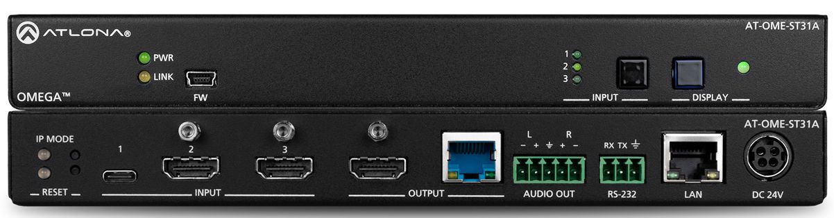 The Atlona AT-OME-ST31A is a compact yet versatile 3×1 switcher and HDBaseT transmitter with HDMI and USB-C inputs, and mirrored HDMI and HDBaseT outputs. The OME-ST31A is part of the Omega™ Series of integration products for modern AV communications and collaboration.Read More