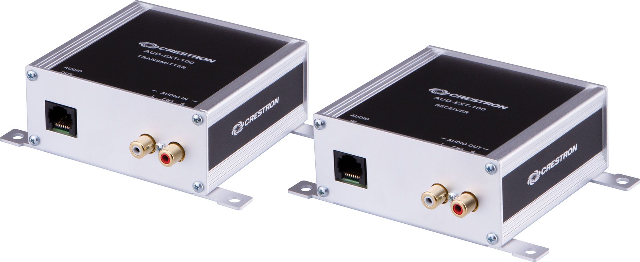 The Crestron® AUD-EXT Series is a family of low-cost audio extenders designed for transporting analog and digital audio signals over several hundred feet using inexpensive CAT5 (or better) UTP cable. Four different