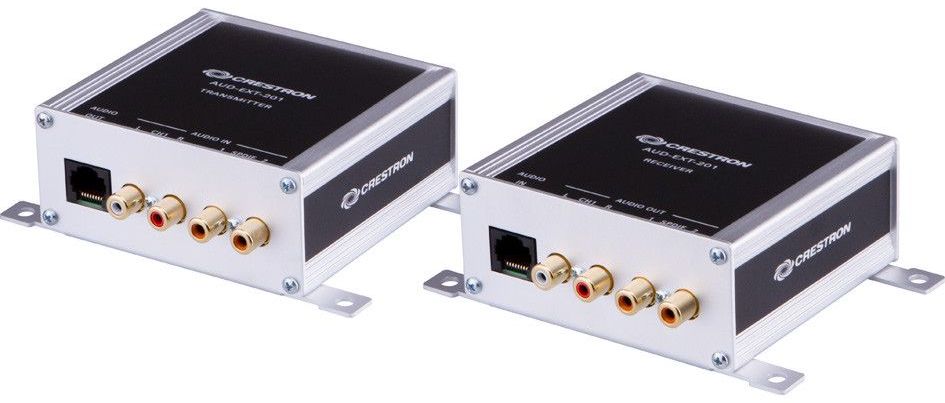The Crestron® AUD-EXT Series is a family of low-cost audio extenders designed for transporting analog and digital audio signals over several hundred feet using inexpensive CAT5 (or better) UTP cable. Four different