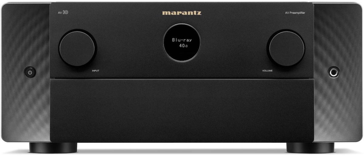 A modern expression of timeless design principles, AV 10 features the iconic Marantz porthole, premium materials, and subtle sidelights that illuminate the front panel.