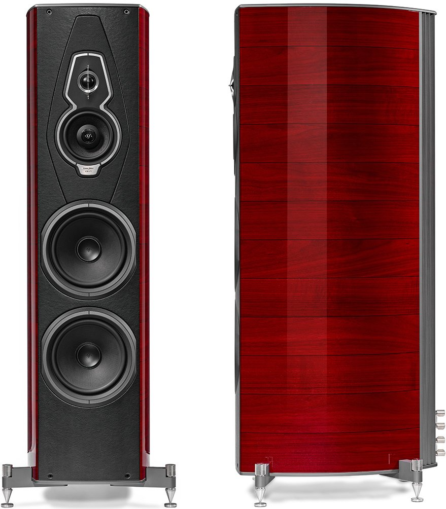Nine layers of natural wood are combined according to the grain and finished with nine coats of beautiful lacquer. Then, multiple steps of sanding and brushing by hand ensure every Sonus faber speaker is a joy to behold. In keeping with the ethos of Homage, Amati Generation 5° marries state-of-the-art sound technology with visual artistry in three stunning finishes: Graphite, Wenge and Red.